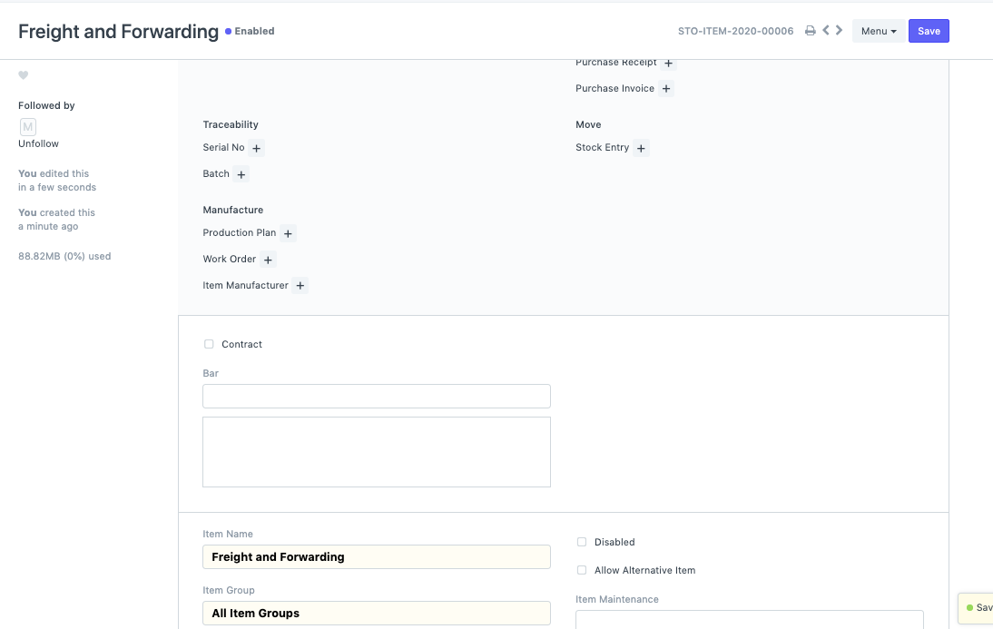 • الآن قم بإنشاء عنصر بالاسم: الشحن والتخليص