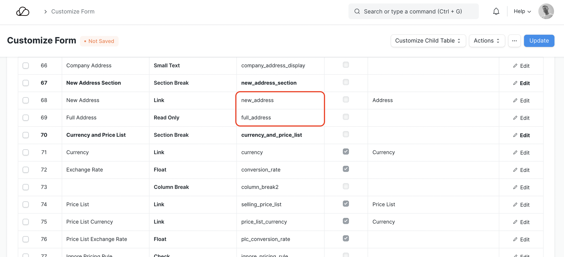 انتقل إلى DocType المطلوب وقم بتحديث الصفحة لتصبح التغييرات سارية المفعول.