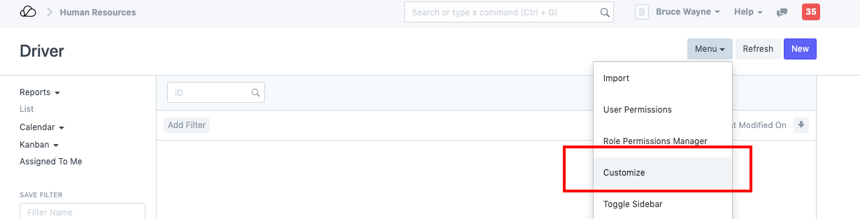 2. اذهب إلى القائمة > تخصيص