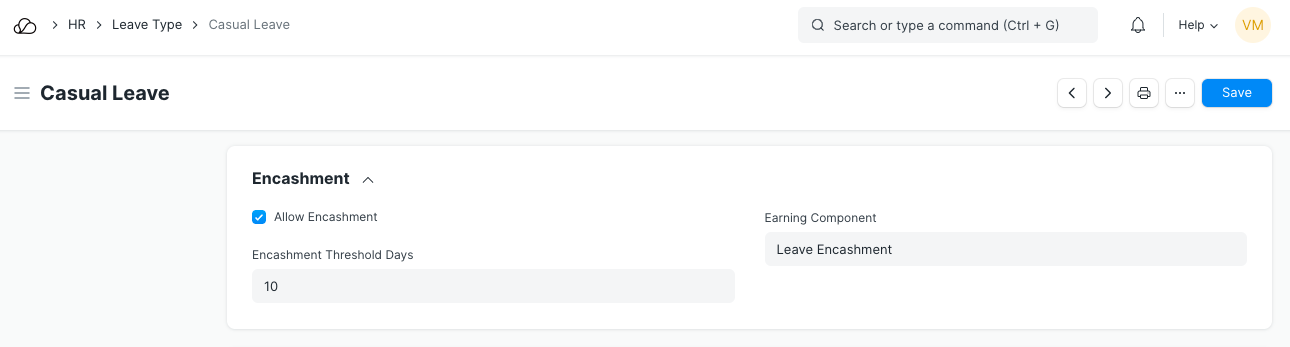 1. قم بتمكين "السماح بالصرف" لنوع الإجازة الذي سيكون من نوع الصرف.