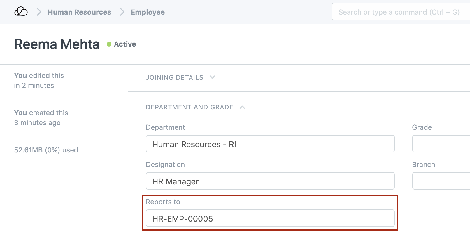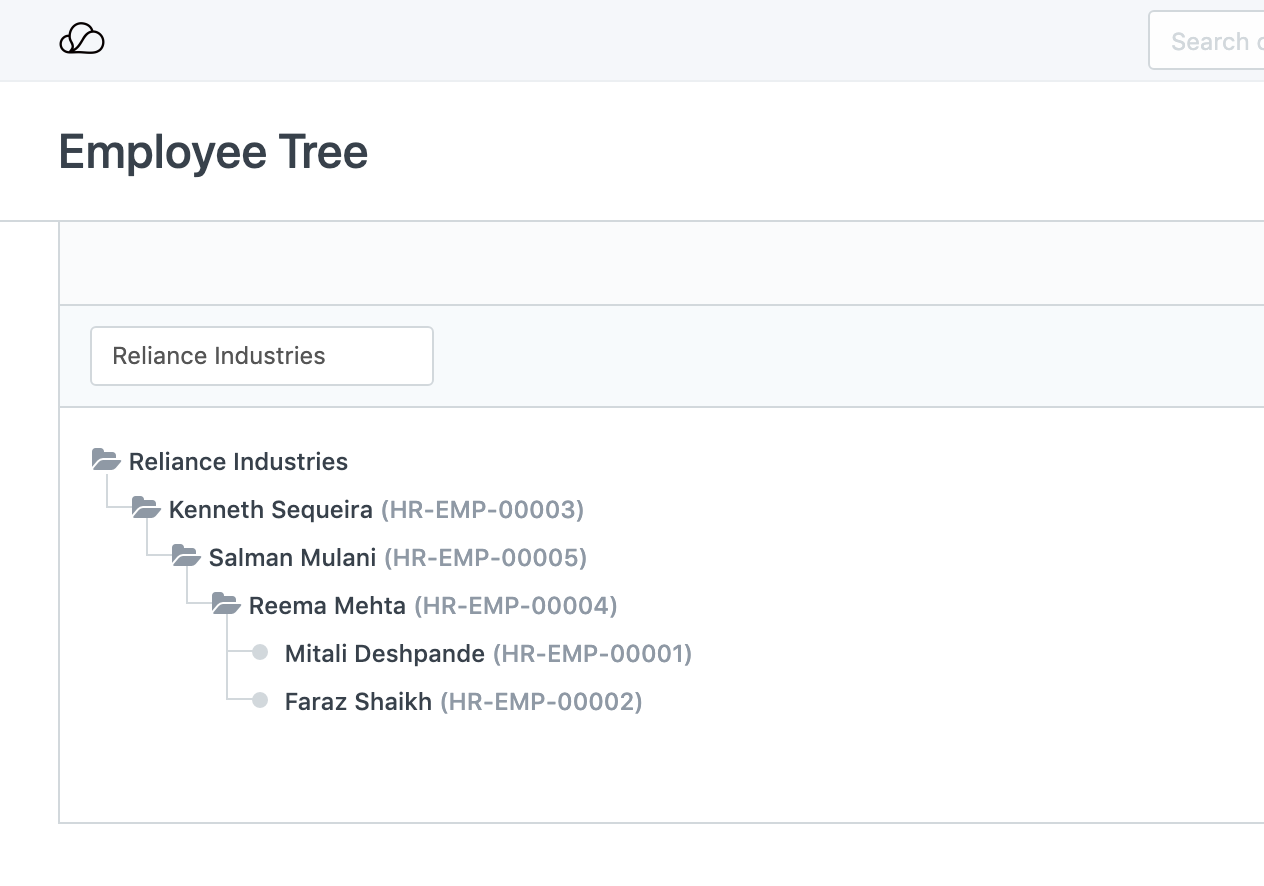 في مدير الموظف، يمكنك تحديد من يقوم بإبلاغه لكل موظف. واستنادًا إلى التقارير المحددة، تم إنشاء التسلسل الهرمي للموظفين أيضًا.