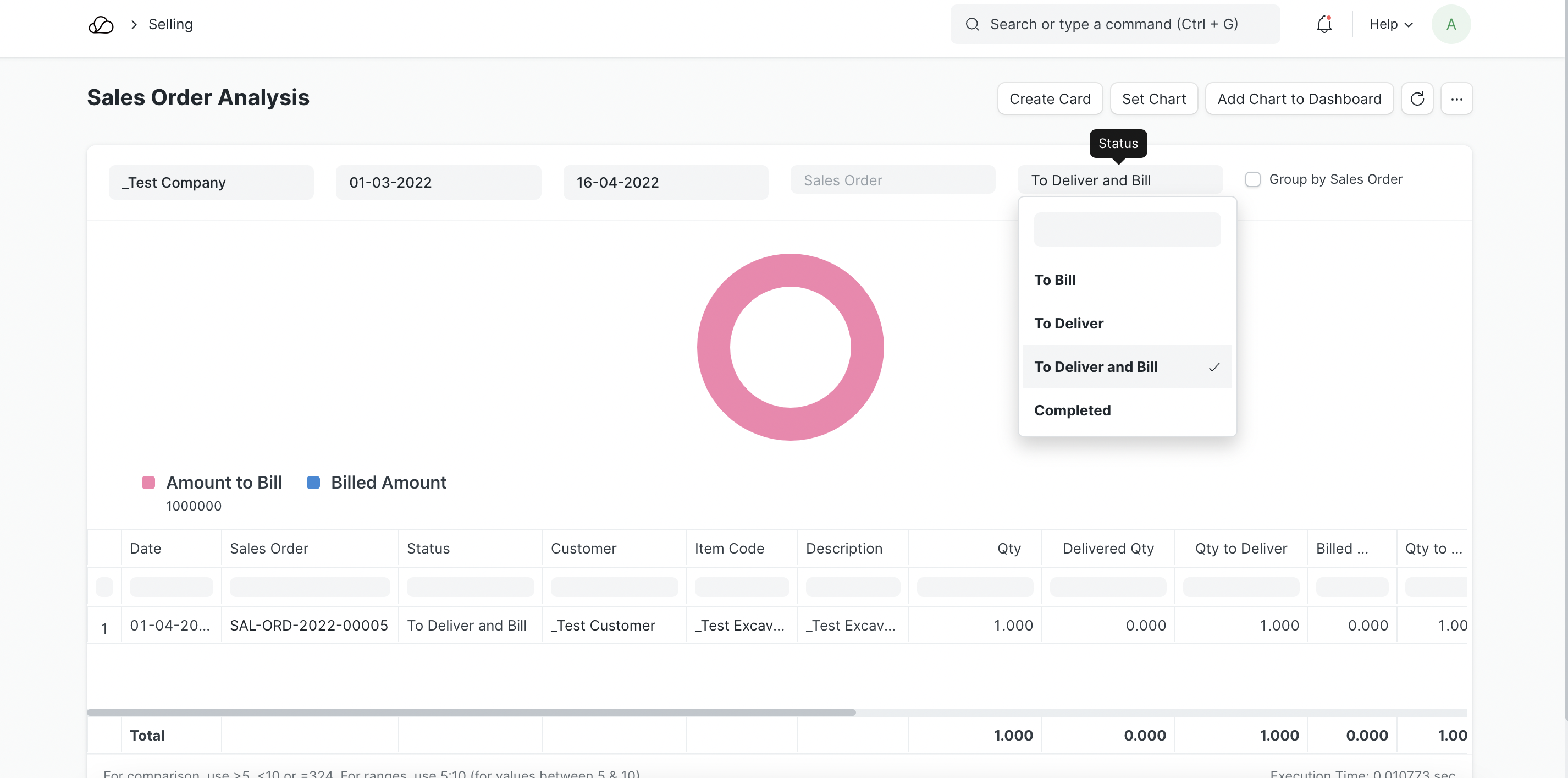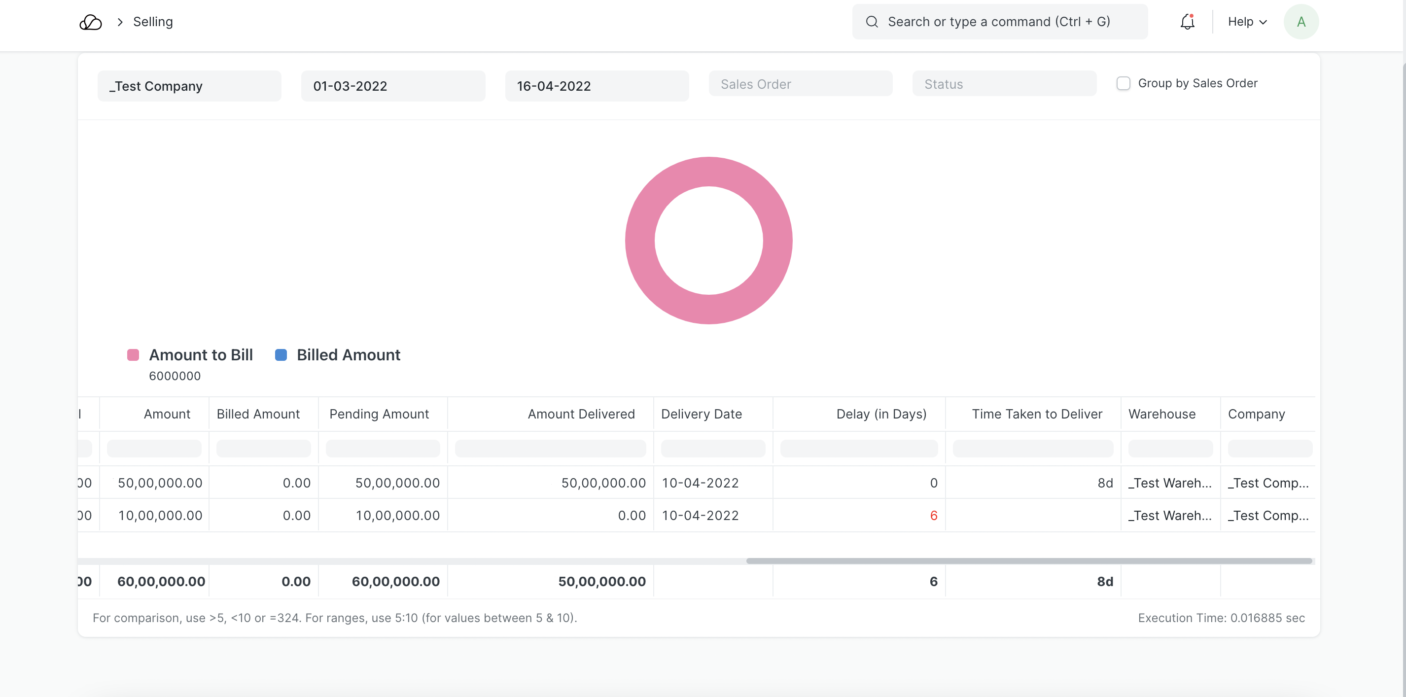 يوفر هذا التقرير حالة الفواتير والتسليم الحالية لجميع أوامر المبيعات النشطة. يمكن تطبيق حالة الشركة والنطاقات الزمنية وSO باستخدام نافذة التصفية.