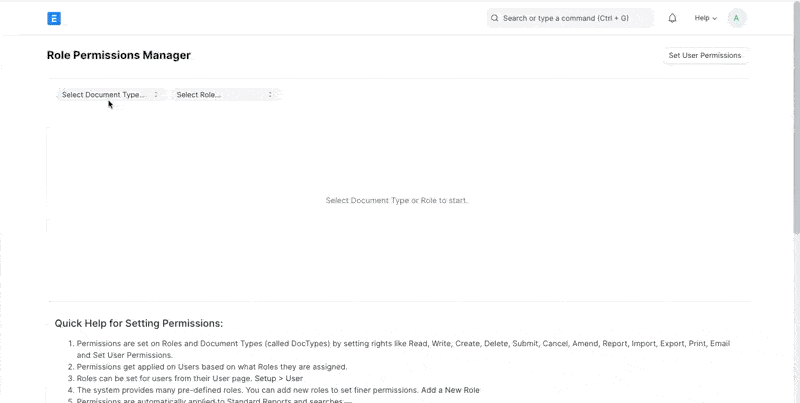 قم بالتصفية باستخدام نفس نوع المستند _ (فاتورة المبيعات في مثالنا) _ وقم بتحرير الأذونات بناءً على الأدوار