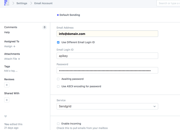 إعداد البريد الإلكتروني Sendgrid SMTP