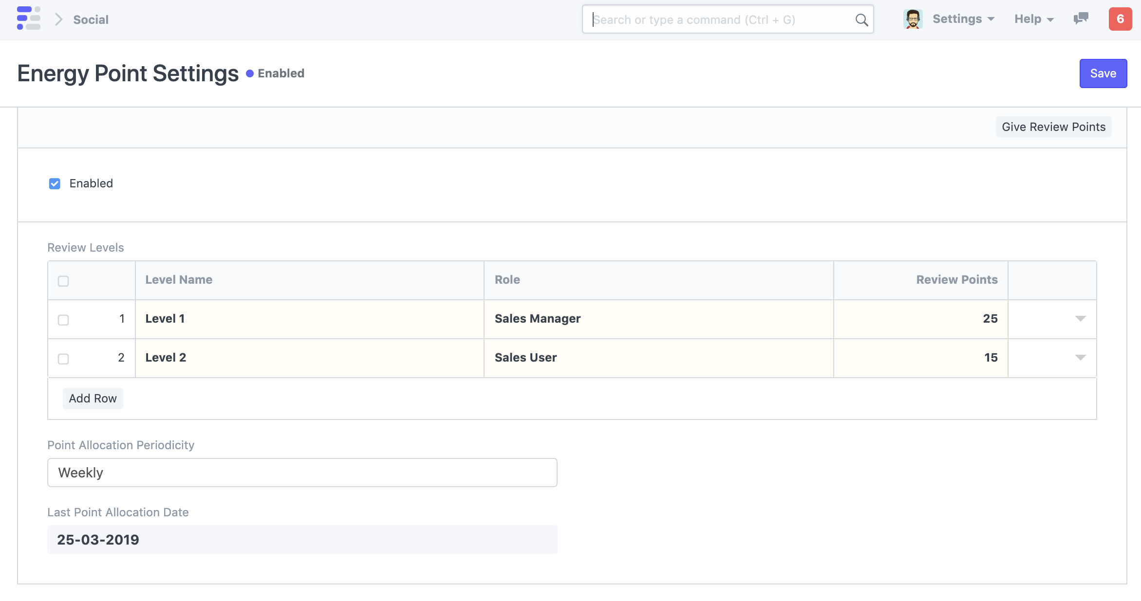 تحقق من ملف GIF التالي للتعرف على عملية المراجعة. للمراجعة، يحتاج المستخدم إلى الحصول على نقاط مراجعة يمكن تعيينها بواسطة مدير النظام من خلال إعدادات نقطة الطاقة.