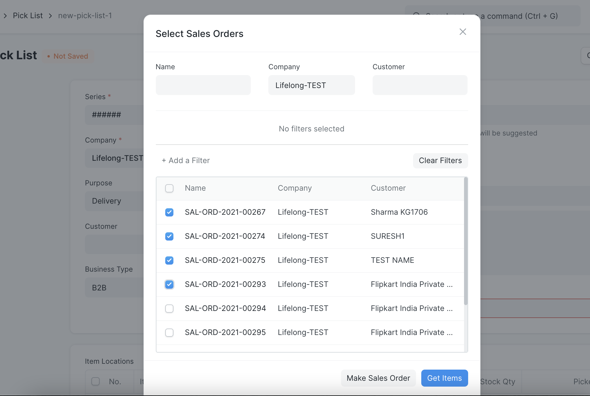 4. بدلاً من ذلك، يمكنك إنشاء قائمة اختيار جديدة والنقر فوق "الحصول على العناصر". سيُظهر هذا نافذة منبثقة لجميع أوامر المبيعات المعلقة.