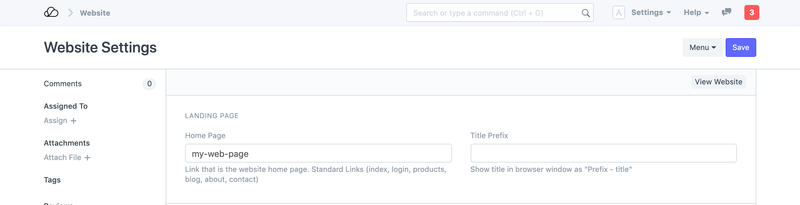 تقوم وحدة موقع OneOfficeERP بإنشاء صفحة مقصودة افتراضية لموقعك على الويب. يمكنك تخصيصه في الصفحة الرئيسية.